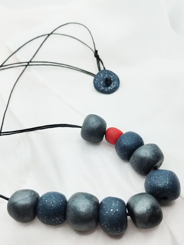 Κολιέ φτιαγμένο στο χέρι από πολυμερικό πηλό. Το κολιέ στέκεται πάνω στο στήθος. Το καθένα είναι ένα και μοναδικό αφού είναι φτιαγμένο αποκλειστικά στο χέρι. Σε όλα τα χειροποίητα υπάρχει και δυνατότητα customade παραγγελίας κατόπιν συνεννόησης. Δυνατότητα χονδρικής πώλησης.