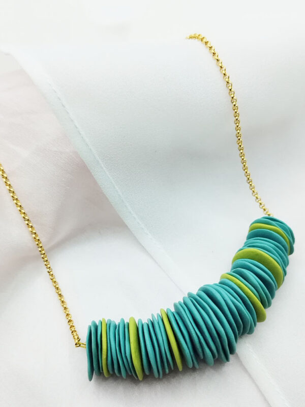Κολιέ φτιαγμένο στο χέρι από πολυμερικό πηλό. Όλα τα μεταλλικά στοιχεία είναι ατσάλινα. Η αλυσίδα είναι 40εκ. με προέκταση. Τα χειροποίητα προϊόντα μπορεί να διαφέρουν από τη φωτογραφία, αφού το καθένα είναι μοναδικό και φτιαγμένο αποκλειστικά στο χέρι. Σε όλα τα χειροποίητα υπάρχει και δυνατότητα customade παραγγελίας κατόπιν συνεννόησης. Δυνατότητα χονδρικής πώλησης.